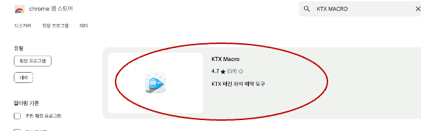 "KTX MACRO"를 검색한 후, 해당 확장 프로그램을 설치하세요.