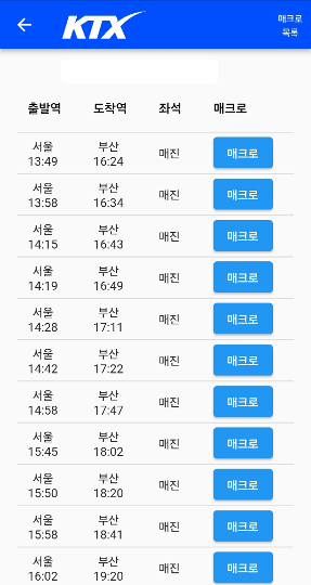 출발지, 도착지, 시간을 선택한 후, 매크로를 설정합니다. 좌석이 매진된 경우, 매크로를 통해 계속해서 예매를 시도할 수 있습니다.